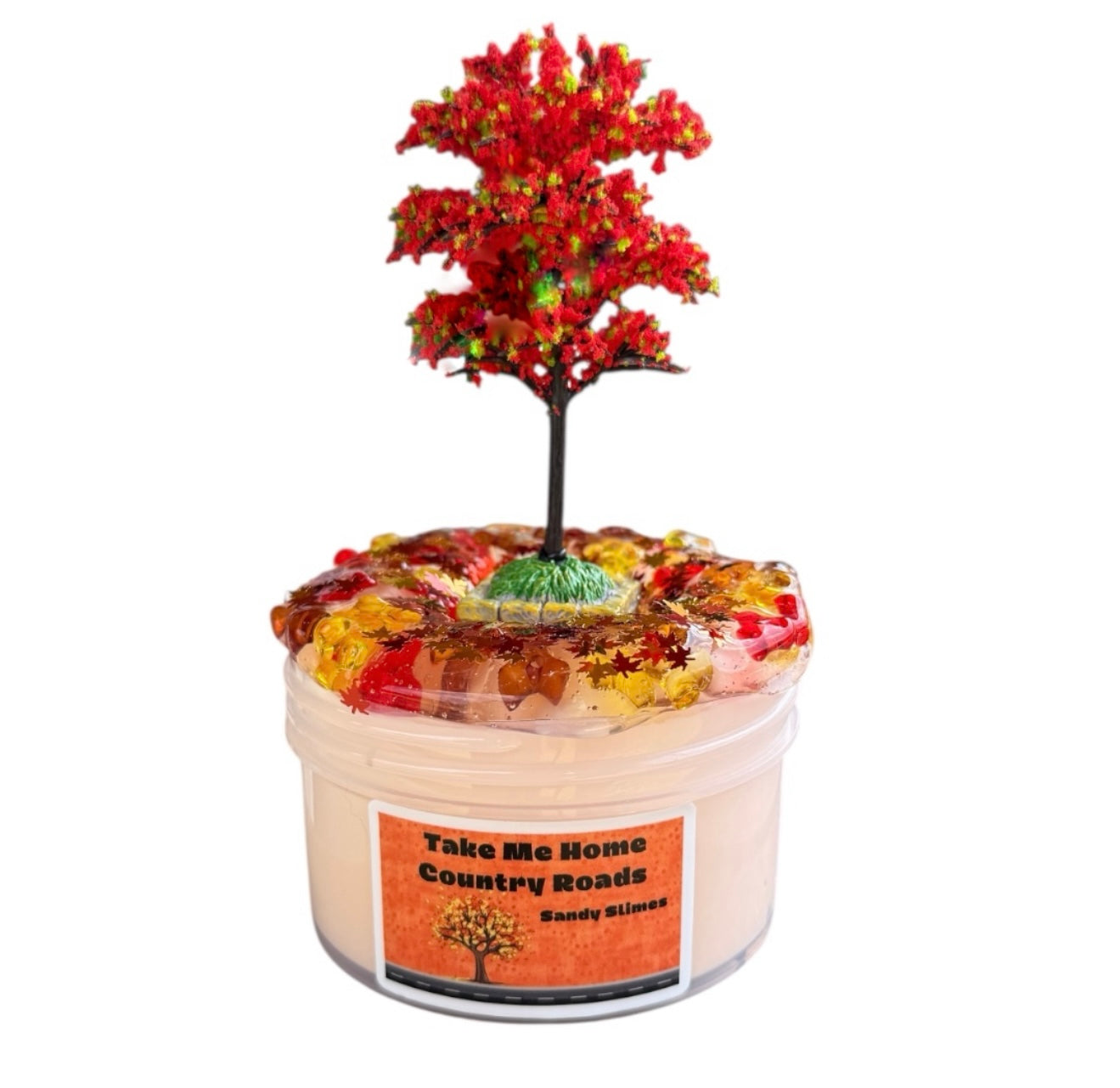 This slime is our signature thick and glossy with a tri-bead topper in fall colors. You’ll receive multi-colored leaf sequins that will catch the light just perfectly. The fall tree charm is exactly like the one we released for Farmstand Orchard. It is scented fall festival which is a perfect blend of Macintosh apples, cinnamon powder, clove buds, sugared vanilla, peach, and citrus. If you are craving a fall scent, this is the one for you.
