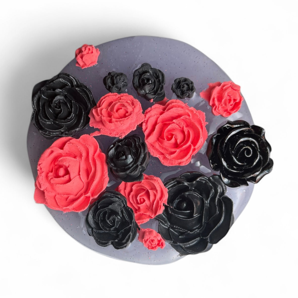 The scent, Blackest Rose, is a darker, more mysterious take on a traditional rose fragrance, blending notes of amber, oriental musk, and sandalwood grain.